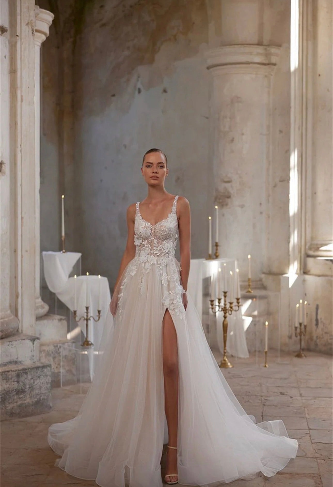 CIVAN Bridal Elegant A-Line High Slit Wedding Dress – Custom Made Bridal Gown