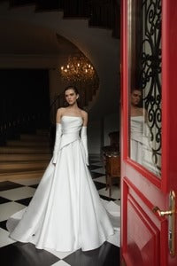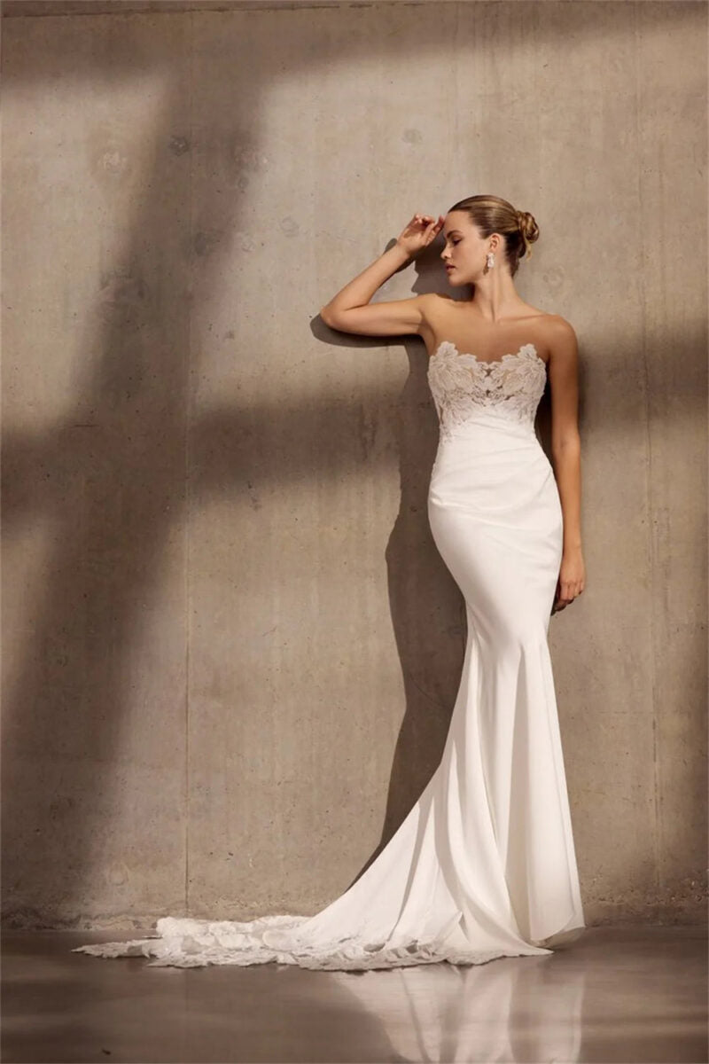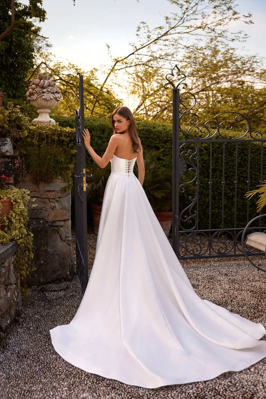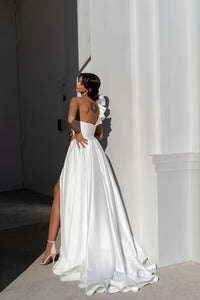 CIVAN Bridal Strapless A-line Wedding Dress with High Slit – Custom Made Minimalist Bridal Gown