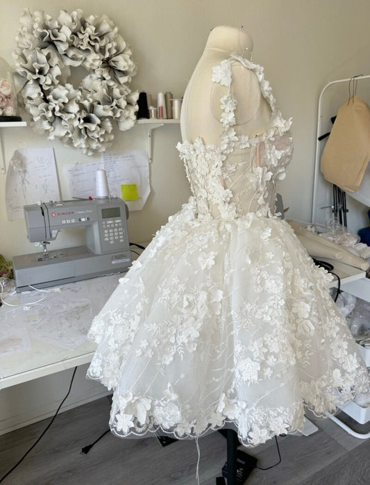 CIVAN Bridal 3D Floral Lace Mini Wedding Dress with Corset Back – Elegant Custom Made Ball Gown